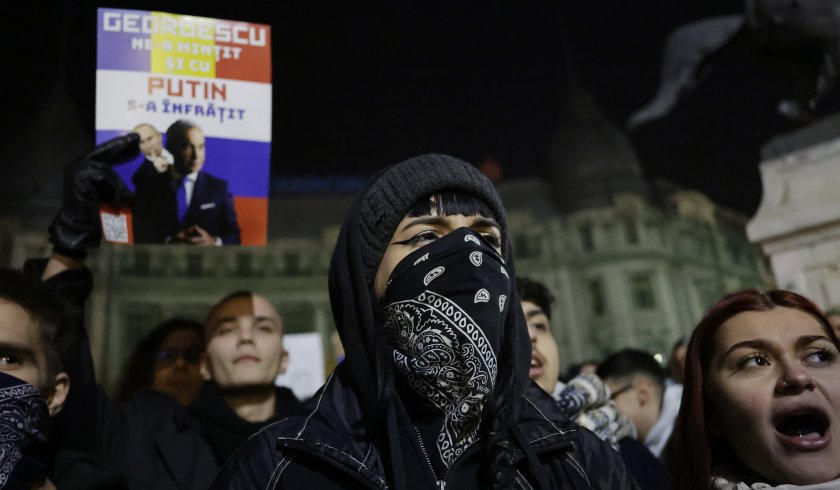 Хиляди се събраха в символ на неодобрение против изненадващата победа в първия тур на президентските избори на крайнодесния претендент Калин Джорджеску.