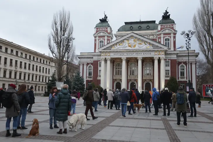 Протестиращи се събраха пред Народен спектакъл " Иван Вазов " в поддръжка на режисьора Александър Морфов, който беше дисциплинарно уволнен, предадеБГНЕС.