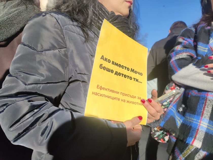 Протестиращи се събраха пред Съдебната палата, с цел да изискат заслужено наказване за 37-годишния мъж, който преби кучето Мечо.