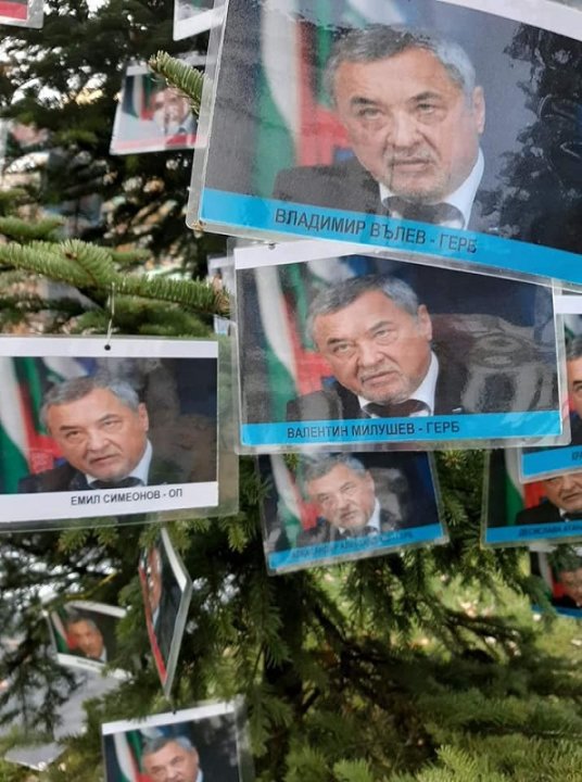 Протестиращите майки украсиха коледно дръвче с лика на Валери Симеонов