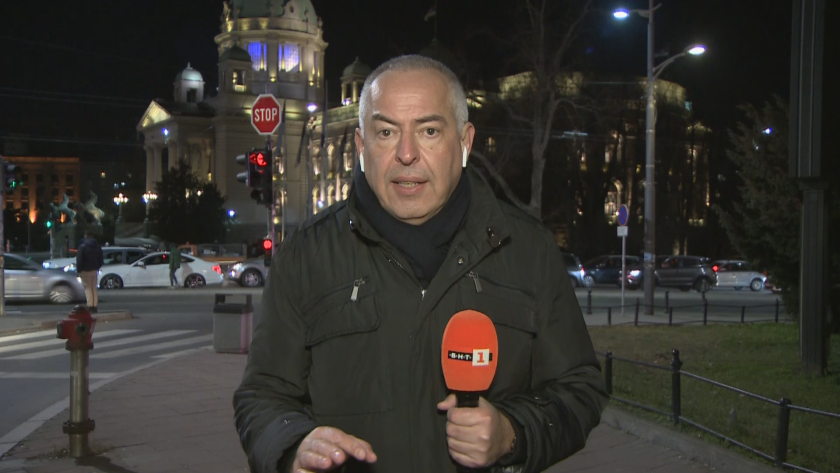 От Белград предават специфичните пратеници на Българска национална телевизия Бойко Василев и Михаил Врабчев.
