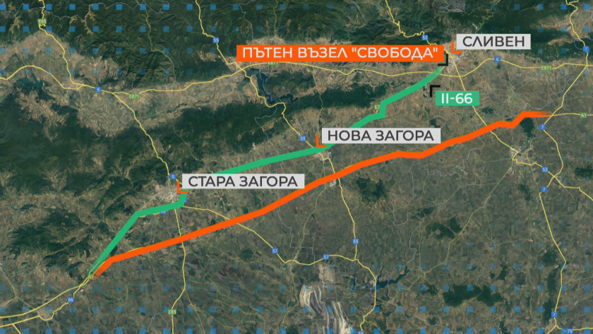 За пътуващите по Автомагистрала " Тракия " е от пътен възел " Нова Загора " по път II-66 Нова Загора - Сливен до пътен възел " Свобода ".