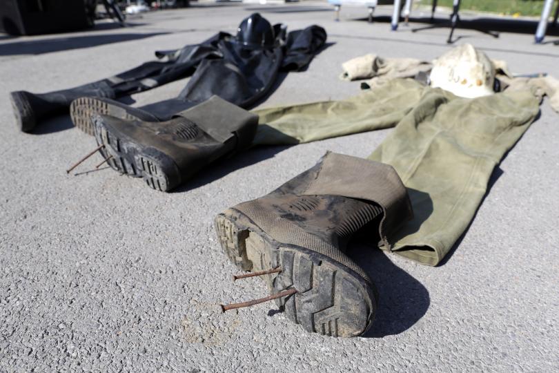 Огнеборците донесоха ботуши със забити ръждиви пирони, с цел да покажат на какво разчитат до момента в който гасят пожари и избавят животи.