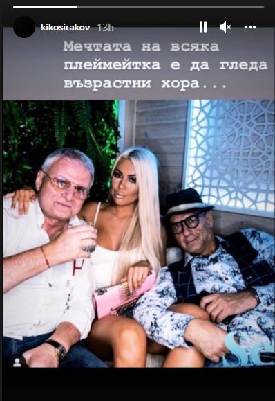 Крис разгласява подигравка с плеймейтката Михаела Тодорова като стори в Инстаграм профила му, а точно фотография, на която тя театралничи в компанията на Ицо Стоте манекенки и Любен Дилов-син.