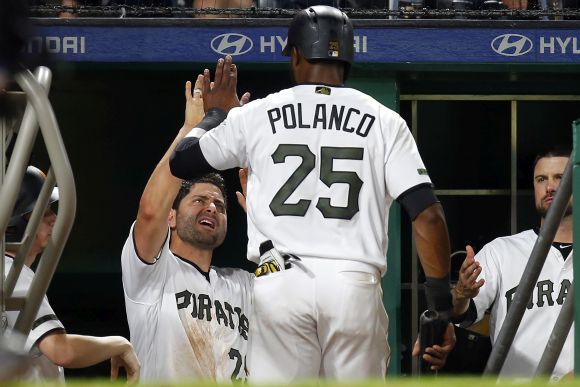 Тази нощ " пиратите " надвиха с 5:4 вкъщи против Сан Диего Падрес, постигайки трета поредна победа и осма в последните девет мача. Решаващата точка влезе в 7-ия ининг, когато Грегори Поланко означи от трета база с помощта на неточност на третия бейзмен на " отчетата " Кристиан Виянуева при лек удар по земя на Кори Дикърсън.