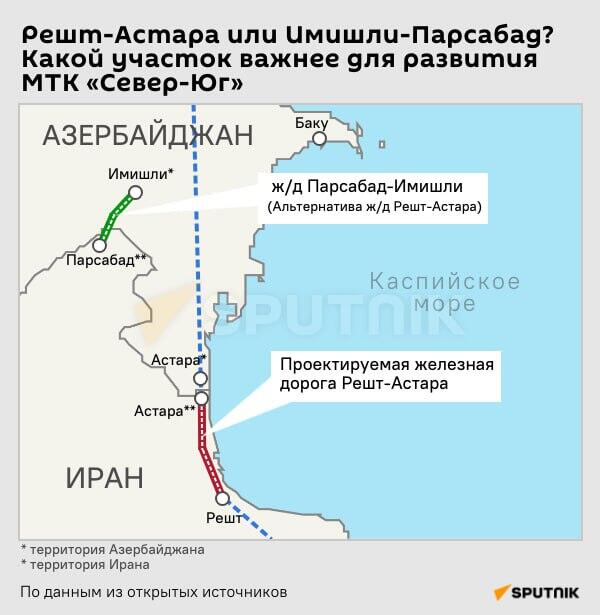 Москва и Техеран възнамеряват скоро да приключат договарянията за построяването на железопътна линия с съветско междурелсие (1520 мм) от границата Парсабад на границата с Азербайджан до пристанището Бандар Абас на кръстовището на Персийския залив и Индийския океан (приблизително 2300 км.), както заяви в края на ноември посланикът на Иран в Руската федерация Казем Джалали.