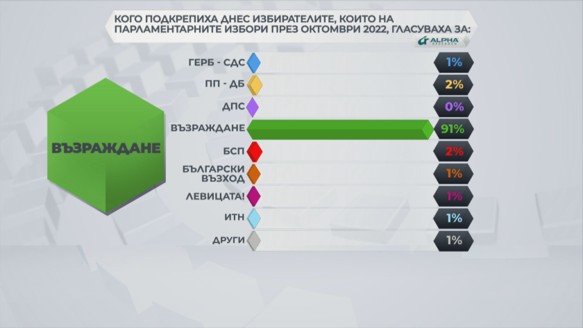 За кого гласоподаваха тези, които на предишните избори избраха " Възраждане ":