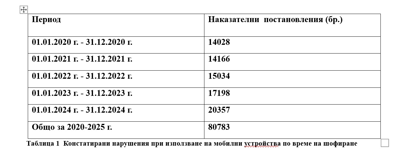 Таблица 1 Констатирани нарушавания при потребление на мобилни устройствa по време на шофиране