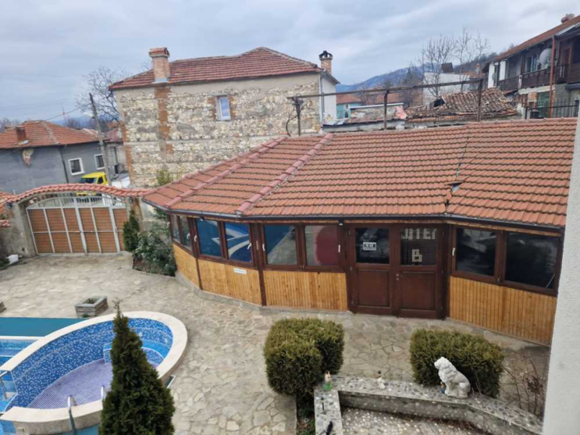 В двора има построен открит басейн с джакузи, кръчма със зала за хранене и кухня с пещ, скара и чеверме.