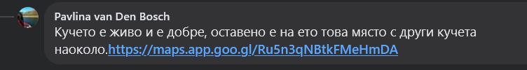 Пълев търси информация за притежателя на животното, като в противоположен случай заплашва, че ще го обеси. " Ако някой си го познае кучето, да пристигна да се разберем, в случай че не - беся го! ", написа профил с име Петър Пълев във Фейсбук.