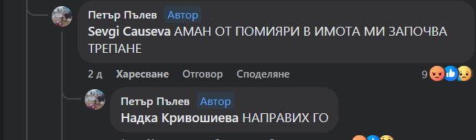 Публикацията събира вълна от реакции във Фейсбук, като локалните поданици означават, че четириногото не е отговорно за това, че е изпуснато. Граждани упорстват на кучето да не бъде посягано, а да се откри цивилизовано решение. Хората напомнят, че убийството на гръбначни животни е закононарушение в България. От своя страна Пълев разгласява притеснителни мнения. " Аман от помияри в парцела ми, стартира трепане ", " Направих го ", твърди Петър Пълев под първата обява, която е популяризирал в групата " Община Батак на хората " във Фейсбук, като не прецизира дали става въпрос за осъществяване на заканата за кучето.