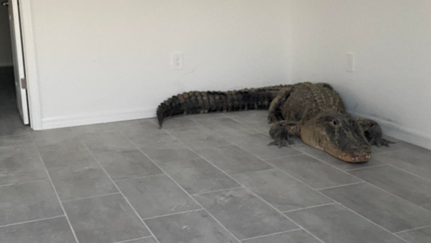 Работник, който довършвал нов дом в региона на Форт Майърс, Флорида, открива великански 4-метров алигатор, който се лута в основната спалня.