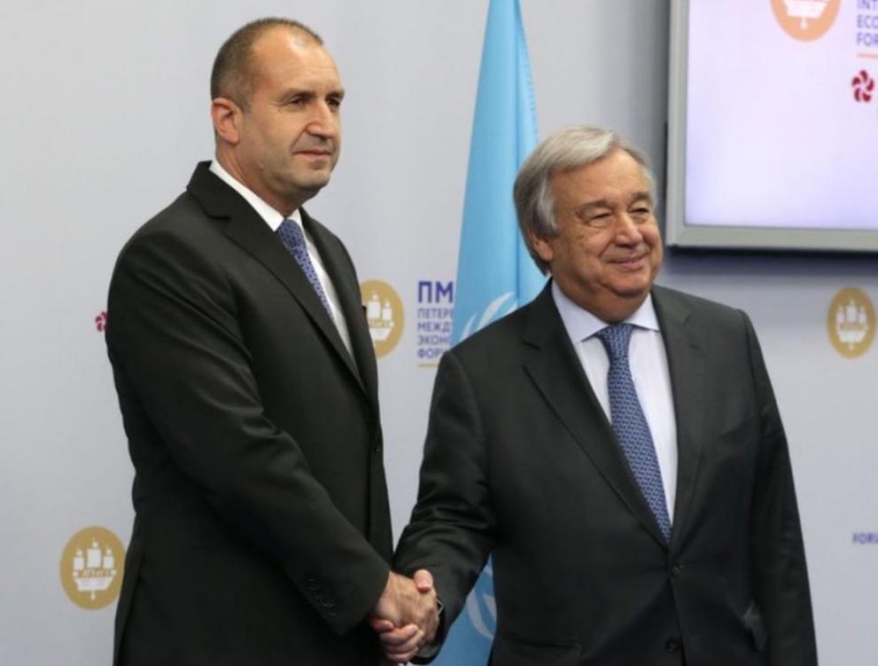 Пресцентър, президентство Пред форума приказва и генералният секретар на Организация на обединените нации Антониу Гутериш, с който Радев се срещна преди пленарното съвещание. Тяхна обща позиция била, че „ отстъплението от многостранната дипломация заплашва сигурността и стабилността и е причина за генерирането на рецесии ”. „ Двамата бяха единомислещи, че климатичните промени, битката с тероризма и устойчивото развиване изискват взаимни старания и общ метод от държавите-членки на Организация на обединените нации ”, се споделя в известие на президентството за срещата.-->