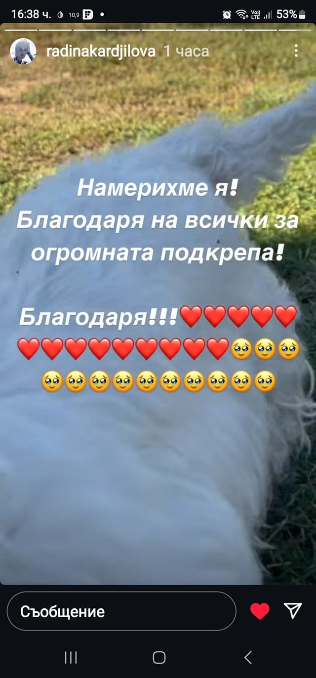 Lupa.bg видя, че доскоро Радина е оповестила, че четириногото е отрито и към този момент е при тях.