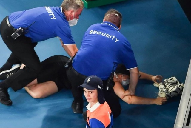 Във финала не липсваха и любопитни обстановки. Във втория сет играта беше прекратена от почитател, нахлул на корта. Охраната съумя да го в профил бързо.