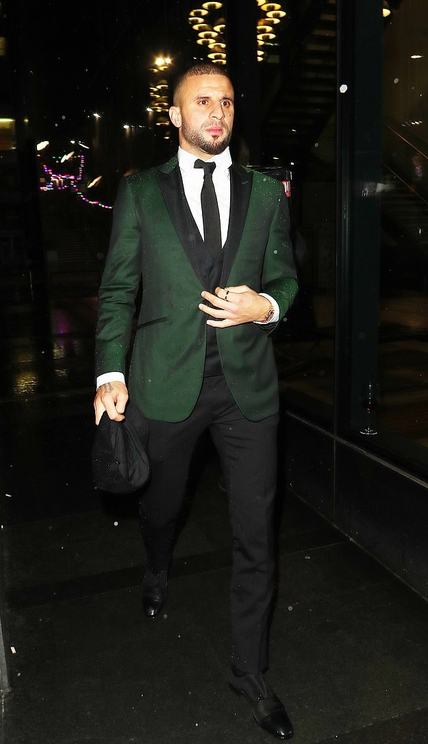 Нападателят на Манчестър Сити прегръщаше от самото начало своята половинка, която блестеше в дълга сребриста рокля с доста кристали съчетана със сандали на висок ток и блестяща дребна чантичка.