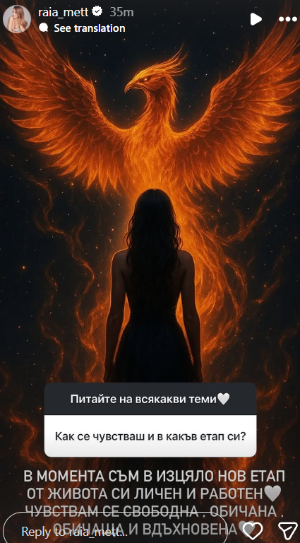 Разлъката се е случила при започване на годината, само че модифицираната русокоска едвам през днешния ден призна, че е " в нов стадий от живота си - персонален и работен. Чувствам се свободна, обичана, обичаща и въодушевена " - написа Ралица, както е същинското име на хубавицата.