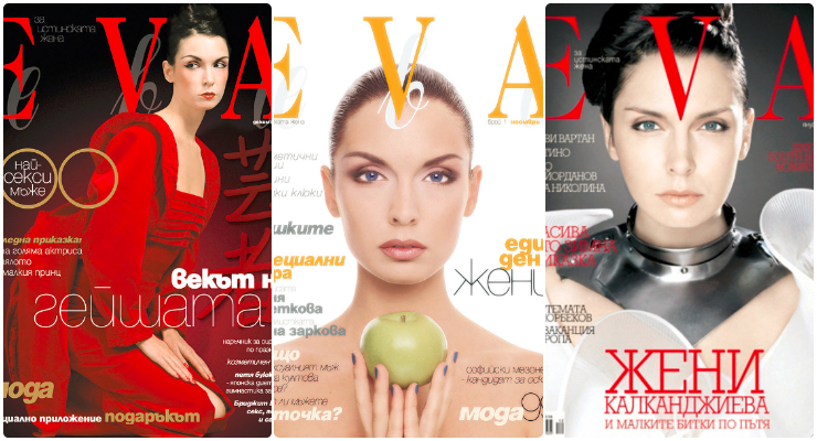 Жени, ти блестиш на три корици на списание EVA. На тази от 1998 година държиш в ръцете си зелена ябъл-ка – това е и първият брой и началото на историята на списанието. На втората си като съвременна амазонка, а на третата като съвременна гейша. Три звездни корици, на които триумфираш с хубостта си. Три декади отбелязва в този момент и организацията, която създаваш дружно с другари, и за чийто празник сте подготвили огромни изненади. Как се появи Visages?