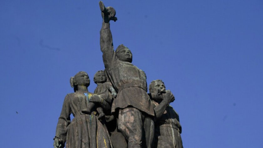 Рано сутринта една от фигурите на паметника на Съветската войска беше оцветена благодарение на дрон.