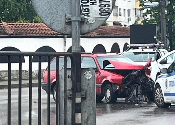 От фотосите се вижда, че две коли са се блъснали челно. И двете са със съществени вреди по предната си част.
