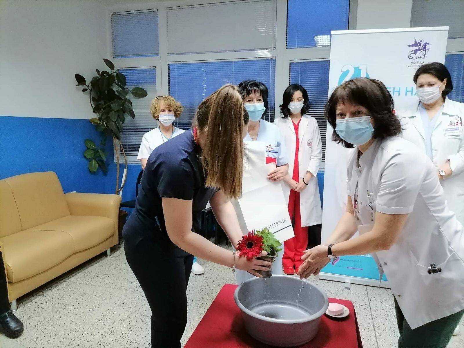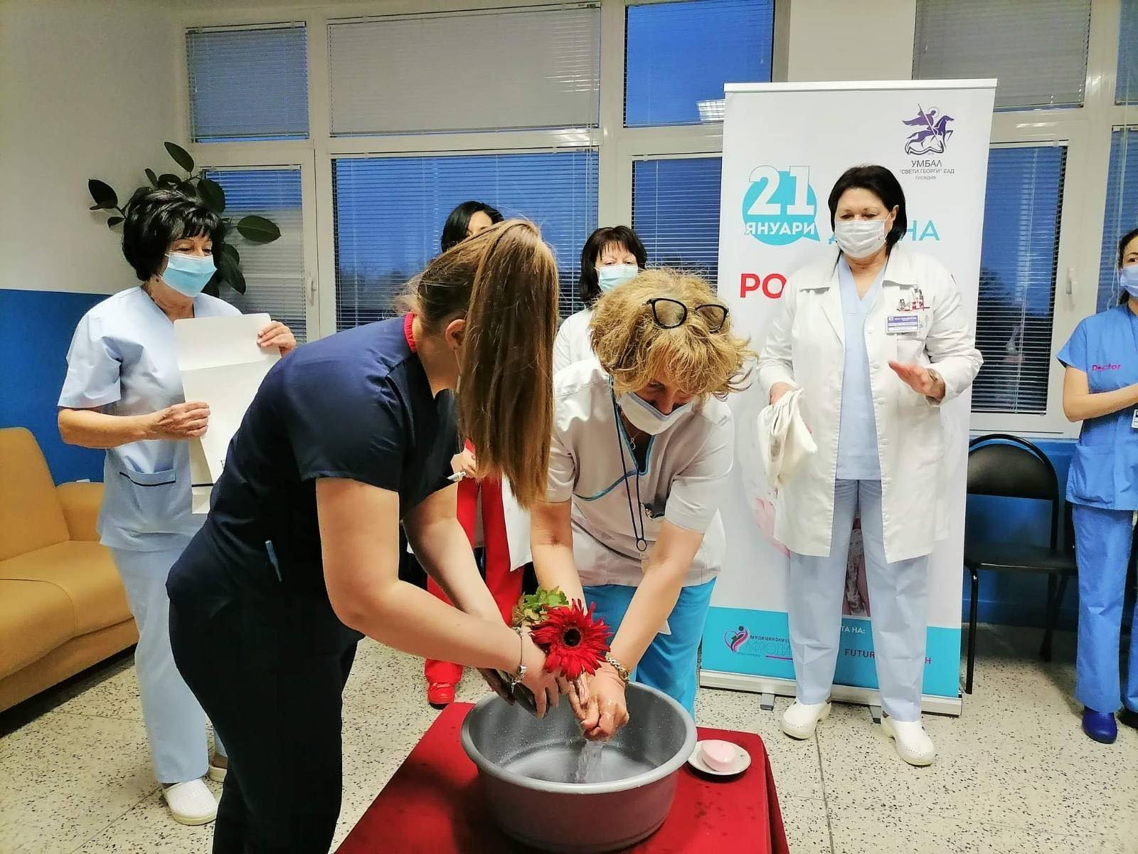 Клиниката по акушерство и гинекология означи професионалния си празник през днешния ден с обред, без обичайното празненство, поради засилените ограничения, свързани с ограничението на разпространяването на COVID-19. Екипът, показан от акушери и гинеколози, неонатолози, анестезиолози, акушерки и санитарки, пресъздаде обреда от националната традиция за празника, известен като Бабинден, с отдаване на респект и почитание към възрастните дами, които са „ бабували “ на родилките.