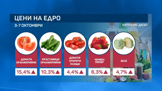 От Държавната комисия по стоковите тържища и борсите регистрират, че повишаването при някои зеленчуци, като доматите и краставиците, е обикновено сезонно събитие в средата на октомври.