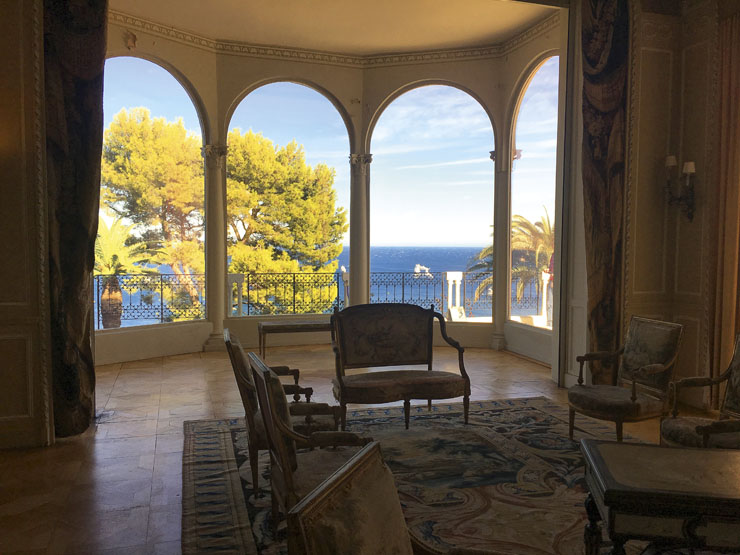 Градините Гледката от терасата стопира дъха. Виждаш огромен парк, състоящ се от девет градини, завършени като огромен транспортен съд. Някога са ги поддържали 30 градинари, облечени като моряци с барети и червени помпони, с цел да основават у Беатрис де Ротшилд чувството, че е на път. Явно тя е обожавала да пътува. Непосредствено зад вилата е френската градина. Има палми, езеро с фонтани и скулптури и пъстри цветя. На 10 минути фонтаните изстрелват вода и зазвучава класическа музика. А вечер, когато ги осветят и с прожектори, са още по-впечатляващи. Плаках! – споделя Мила.