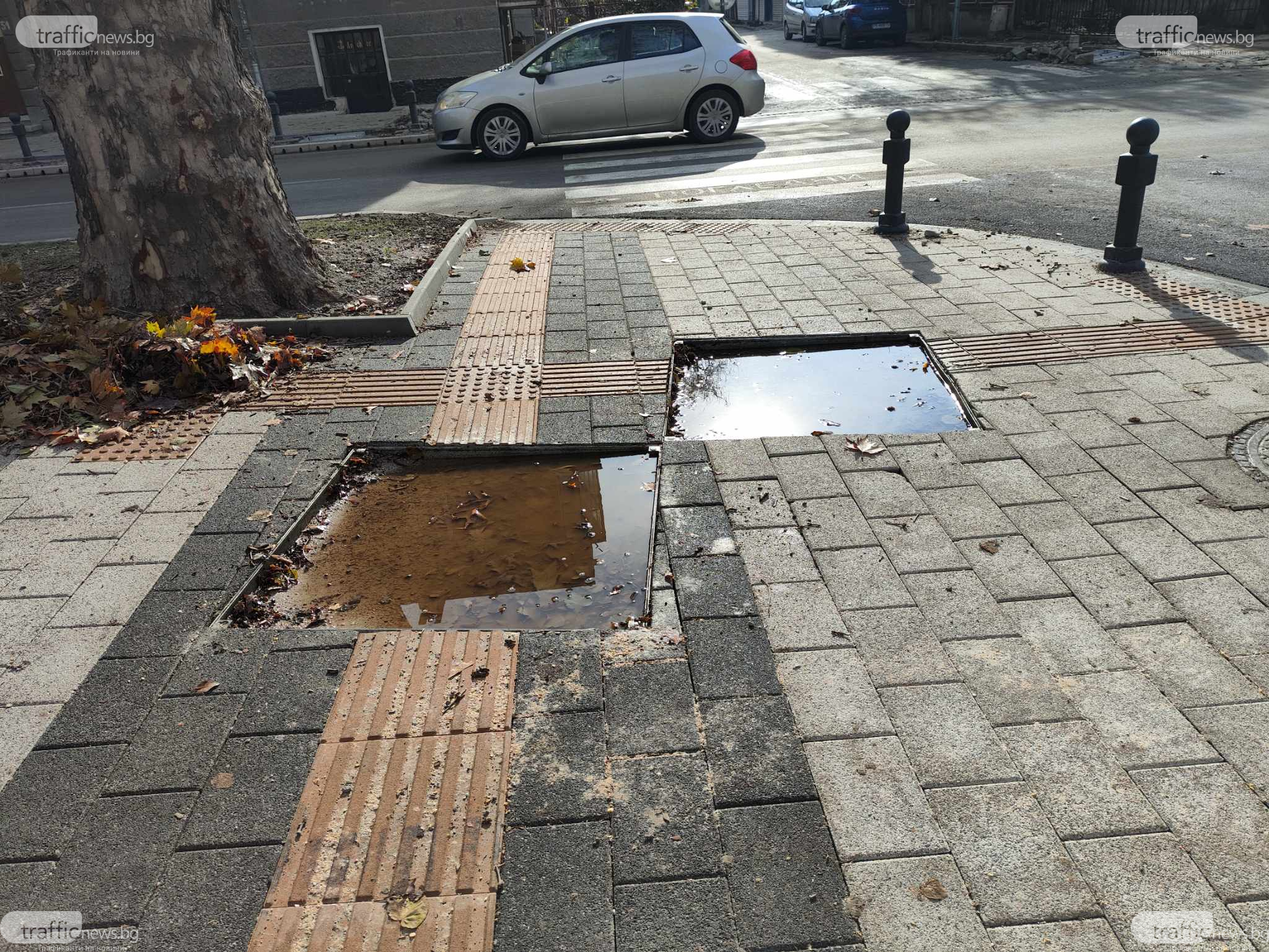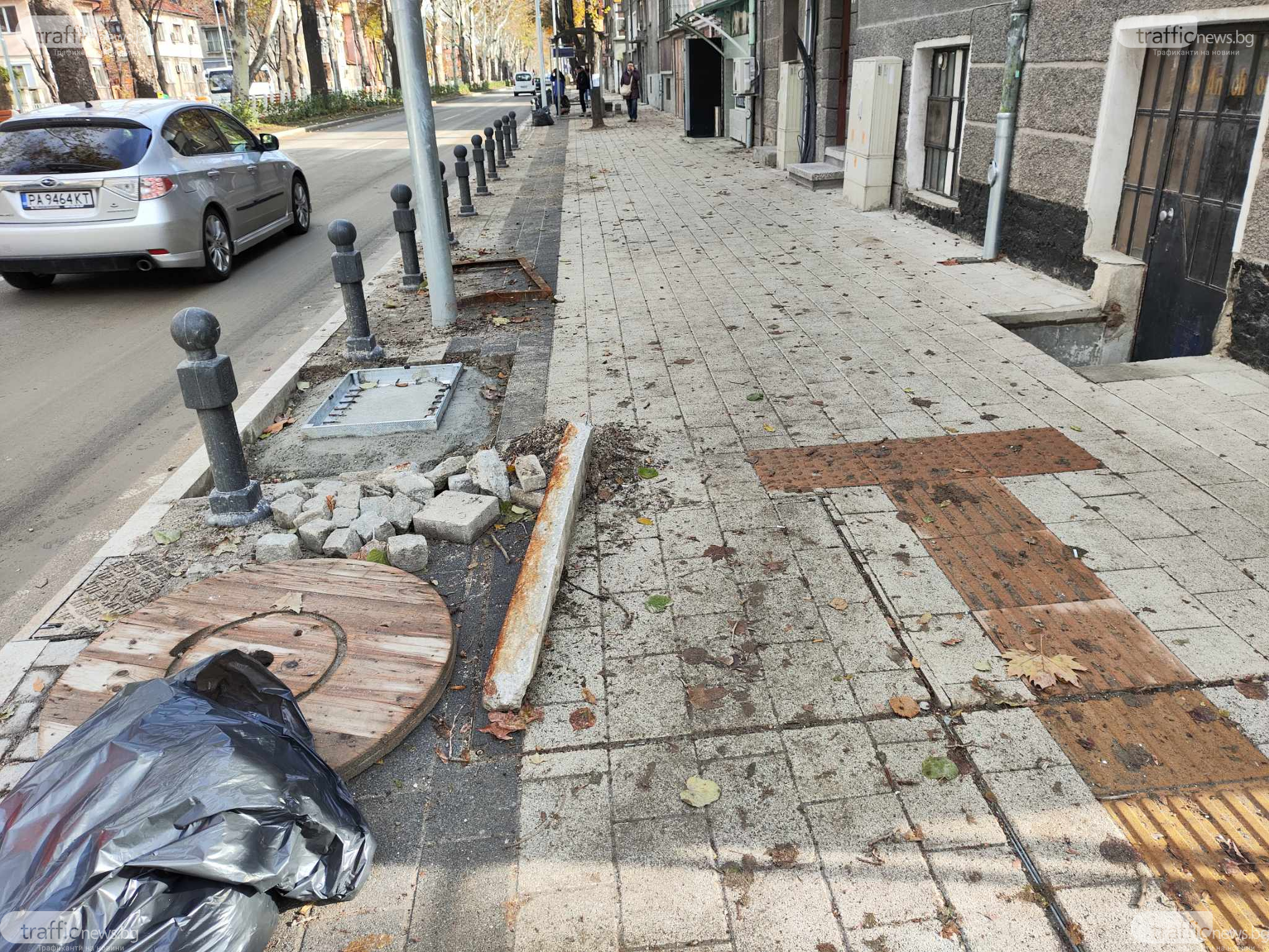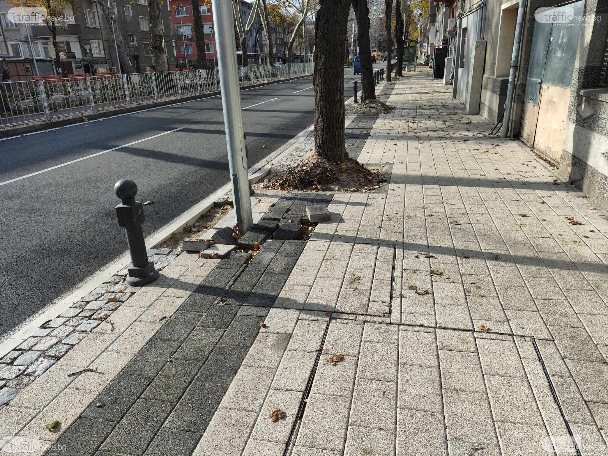 Разбити и пропаднали тротоари, зейнали и необезопасени шахти, изкъртени антипаркинг детайли. Това е обстановката на бул. „ Хаджи Димитър ”, чиято лента бе прерязана от някогашния кмет Здравко Димитров в последните му дни отпред на Община Пловдив.