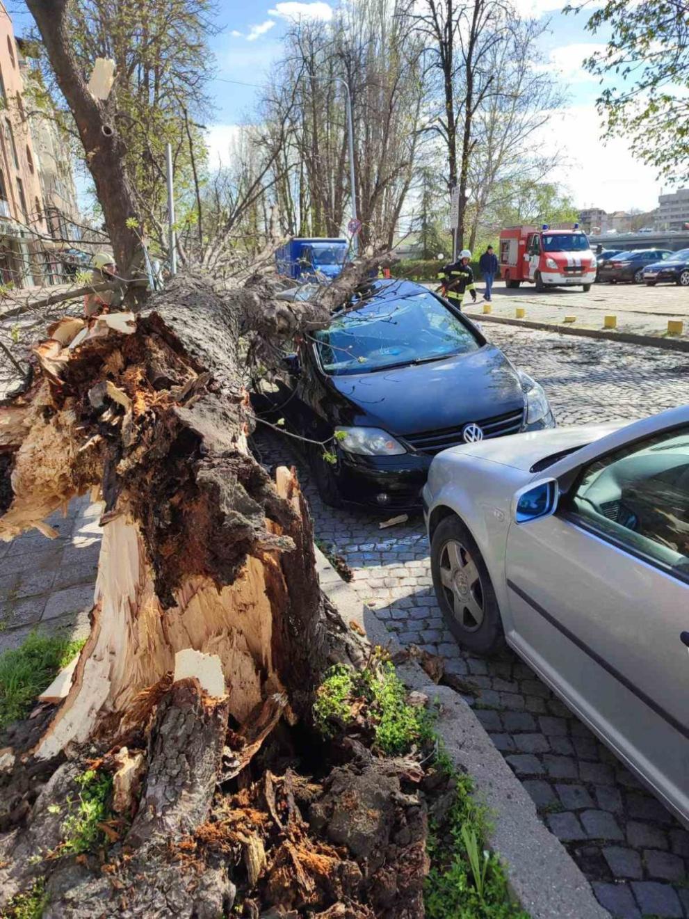 Апелират се водачите да не паркират под дървета. Екипите на пожарната не престават да работят и в този час.