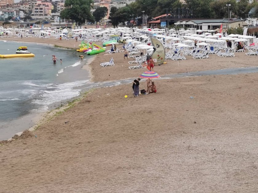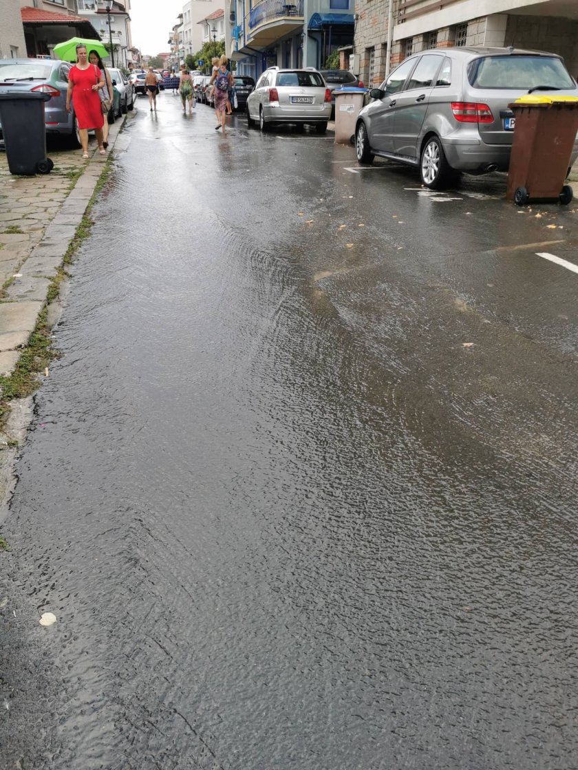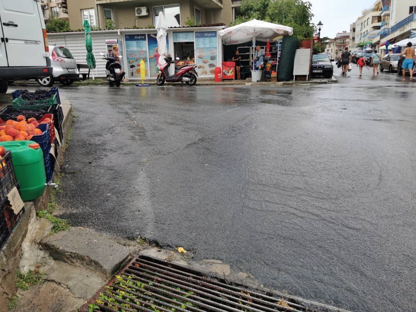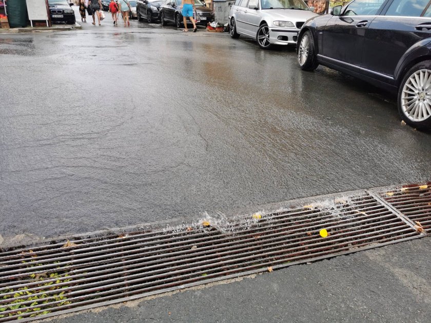 На някои места канализацията не устоя, защото не съумя да поеме цялата вода, изсипала се от небето. На плаж " Хармани " в Созопол водна линия, спускаща се като във водна пързалка от улицата, разцепи плажа на две.