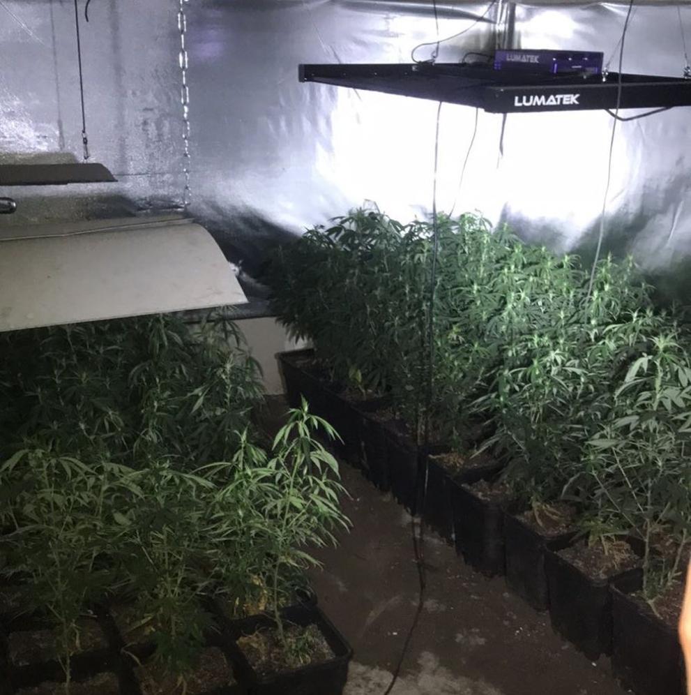 Иззети са общо 261 канабисови растения и към 3 кг суха листна маса. Открити са също бидони, които са цялостни с течност с аромат на бензин, към 280 литра.