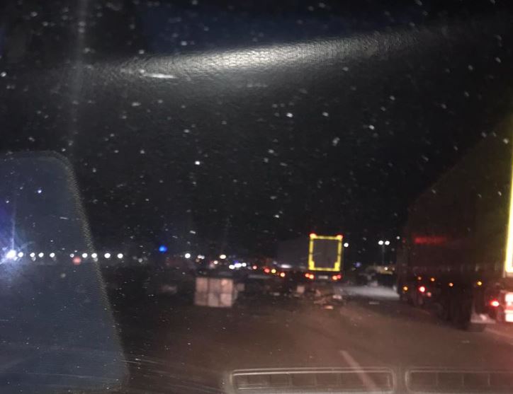 Разпилян товар на Околовръстното в София. Кашони са пръснати из пътното платно в региона на Казичение в посока Пловдив. Движението е мощно затруднено. Автомобилите се движат единствено в спешната лента.