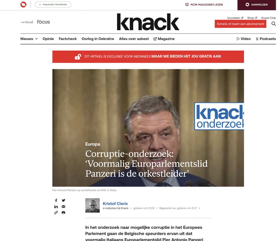 Разследването на хипотетичния случай на корупция в Европейския парламент с Катар е в цялостен ход в Белгия, като управляващите на страната се насочват към италианския някогашен евродепутат Пиер-Антонио Панцери като „ диригентът на оркестъра “ и се ревизира дали той е този, който е давал указания на сътрудниците на евродепутатите какво да вършат.