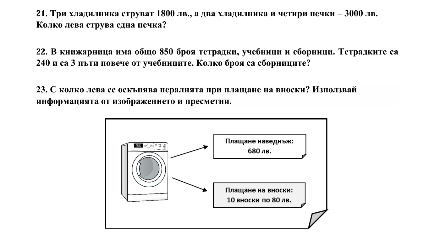 Разстоянието от Самоков до Боровец и оскъпяването на пералнята на изплащане: Задачите на четвъртокласниците по математика