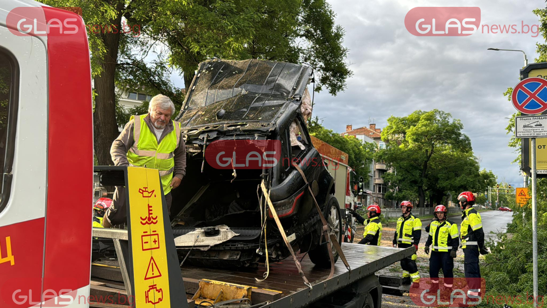 Вдигнаха разцепилата се на две кола след смъртоносния инцидент в Пловдив СНИМКИ