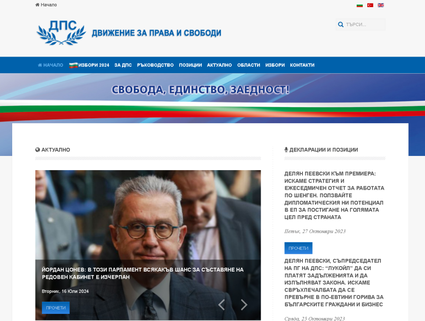 В разделите " Председател ", " Централен съвет " и " Централно оперативно бюро " на Движение за права и свободи продължава да липсва информация.