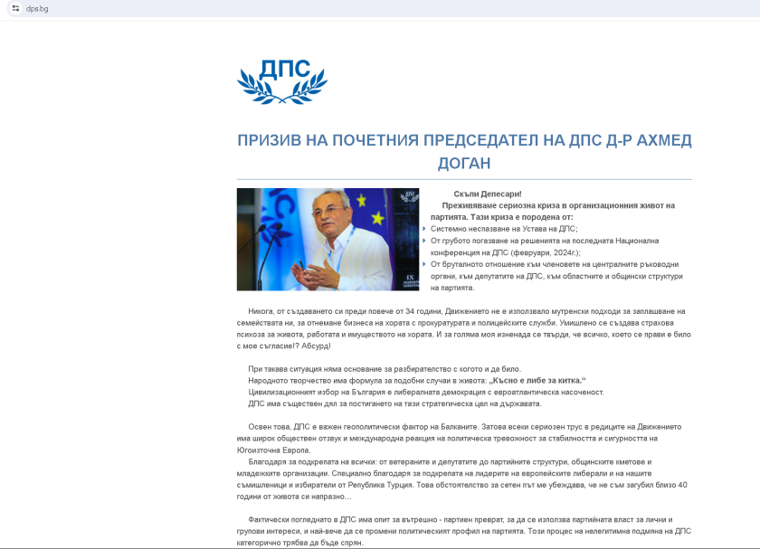 Развитие по тематиката за войната на уеб сайтове в Движение за права и свободи. След като предходната седмица двете крила на Движение за права и свободи водиха кой да овладее партийното онлайн пространство, формалният уебсайт на партията още веднъж е във притежание на доближените до почетния ръководител Ахмед Доган.
