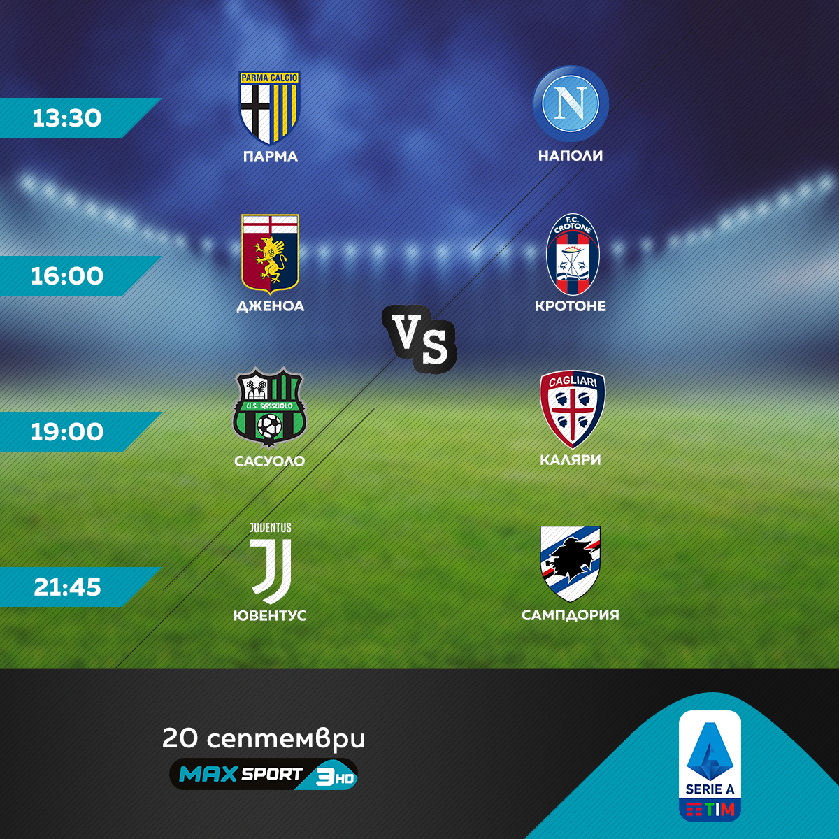 Хегемонът на Апенините Ювентус стартира отбраната на купата си в неделната вечер от 21:45 часа с привидно елементарно домакинство на Сампдория. Кристиано Роналдо и компания имат нов треньор – Андреа Пирло, и сигурно задачата им е невижданият връх от 10-о следващо извоювано Скудето. Как ще тръгнат „ бианконерите “ през сезон 2020-2021 ще стане ясно от директното предаване на мача по MAX Sport 3.