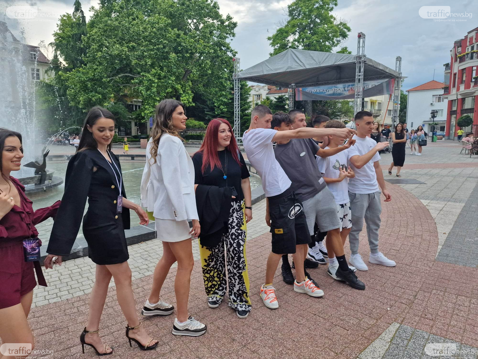 Реалити героините от предаването " Ергенът " Валерия, Пам, Райя и Боряна събраха навалица от фенове, с цел да се снимат с тях на фонтана пред Общината.