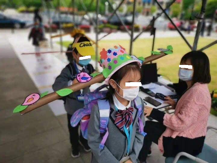 Методи за социално дистанциране: В Китай сложиха двуметрови шапки на деца. В Индия - чадъри