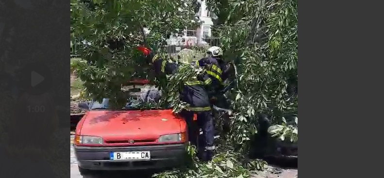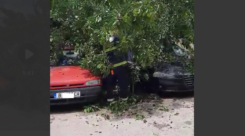 От " Гражданска отбрана " режат клоните, затиснали няколко автомобила във Варна на бул. " Янош Хуняди ".