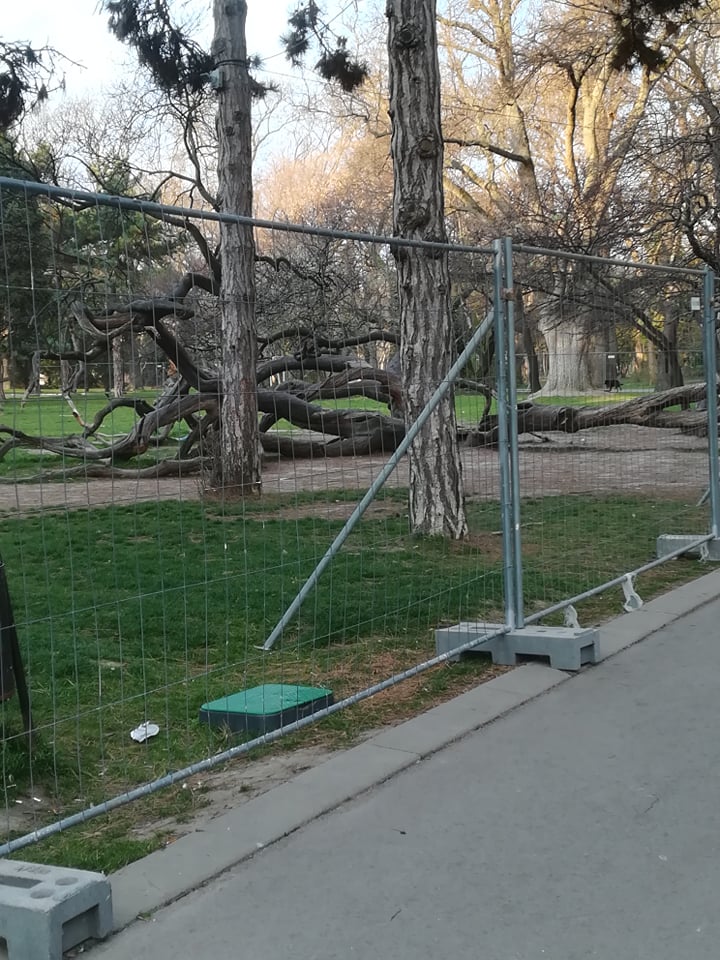 Оградата беше сложена в неделя заран и до обед към този момент обграждаше цялата поляна на обичаното на деца и родители емблематично Криво дърво.
