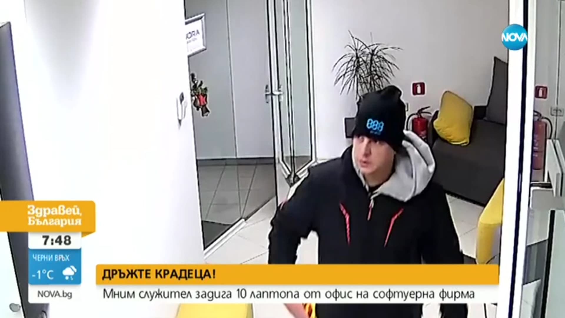 Млад мъж е отмъкнал няколко работни преносимия компютър от софтуерна компания на ул. " Цар Симеон " в София, излиза наяве от репортаж, излъчен в предаването " Здравей, България " по Нова тв.