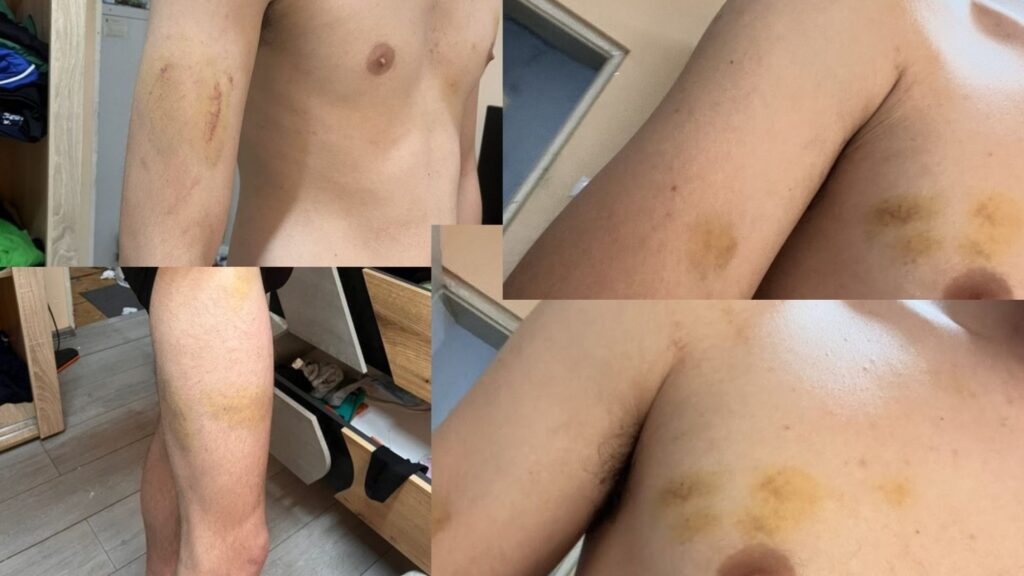 Семейството на потърпевшия съумява да заведе младежа при хасковския патолог доктор Еленски, който издава здравно уверение. В него са разказани следи от побой, напукано ребро и хематоми, в това число забележими следи от белезници. Името на доктор Еленски също е упоменато, само че след това и той отхвърля обществено да е издавал сходен документ.