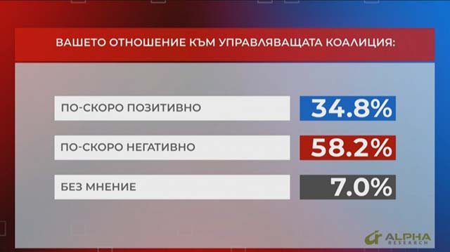 Анкета на БНТ: Близо 60% са с негативно отношение към управляващата коалиция