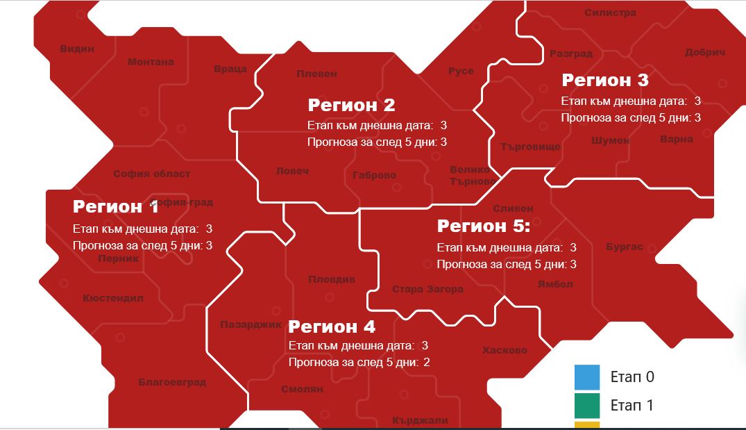 Регион 4 ще се завърне в Етап 2 след 5 дни. Това сочат прогнозите на Министерството на здравеопазването и настоящата карта по райони. Така съгласно проекта за справяне с коронавирус на процедура значи, че би трябвало да отпаднат по-сериозните коронавирус ограничавания.