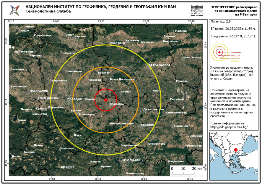 Епицентърът му е на 30 км от град Пловдив и на 160 км от град София / Снимка: НИГГГ