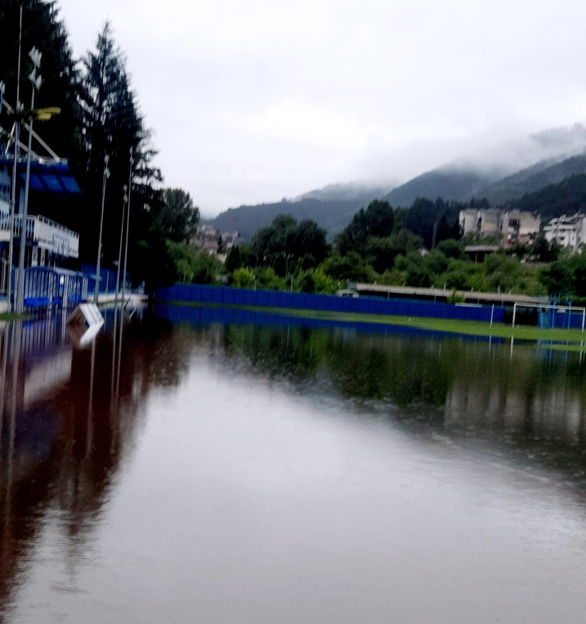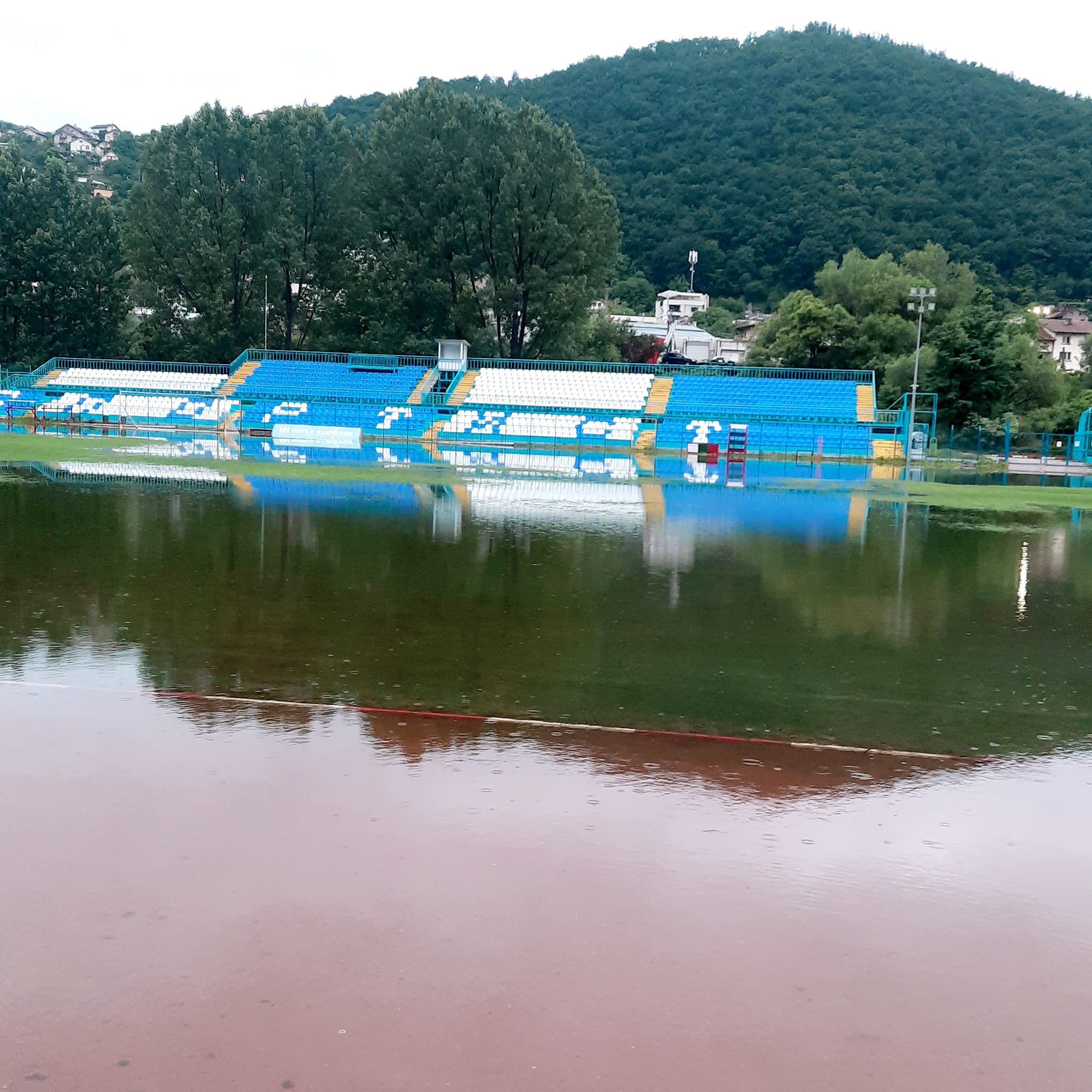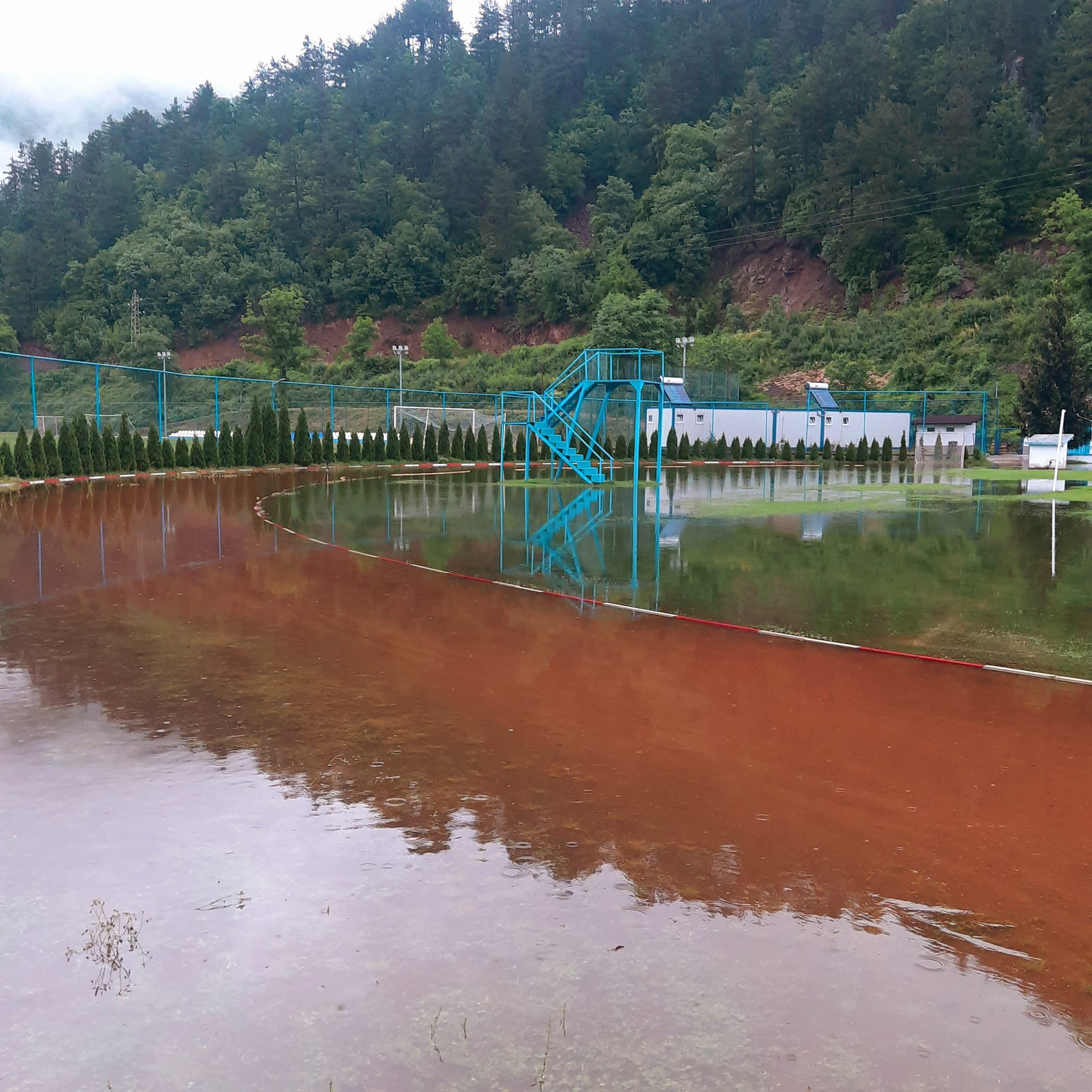 Река Искър е заляла градския стадион в Своге, оповестиха от ПФК " Спортист ". Заради наводнението ще се наложи смяна на началото на лятната подготовка на тима.