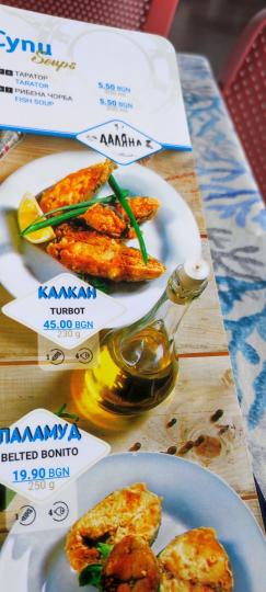 В обедните менюта, които са и най-евтините оферти на морето, рибената чорба излиза 7,50 лева - 8 лева За съпоставяне в някои по-тузарски заведения за хранене цената скача и до 15 лева По-евтина е пилешката супа, за която ще би трябвало да платите 5,50 лева - 6 лева Порция телешки кюфтета с гарнитура са сред 10 и 15 лева, а суджукът с гарнитура е към 10 лева Кашкавал пане може да намерите и за 8,60 лева, а пиле с ориз ще ви коства 7-8 лева Най-скъп е зарганът, който е по 16,90 лева порцията. Котлет от акула има за 10,80 лева Сред най-често поръчваните риби е скумрията с гарнитура, която може да се откри за 7-8 лева