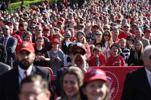 Рекордните близо 5300 почитатели бяха позволени на Южната поляна пред Белия дом, с цел да участват на церемонията по посрещане от страна на президента Доналд Тръмп на новия първенец в МЛБ – Вашингтон Нешънълс. Първият столичен бейзболен клуб, спечелил купата в Световните серии след несъществуващия Вашингтон Сенатърс през 1924 година, беше признат нощес от 45-ия държавен глава на Съединени американски щати.